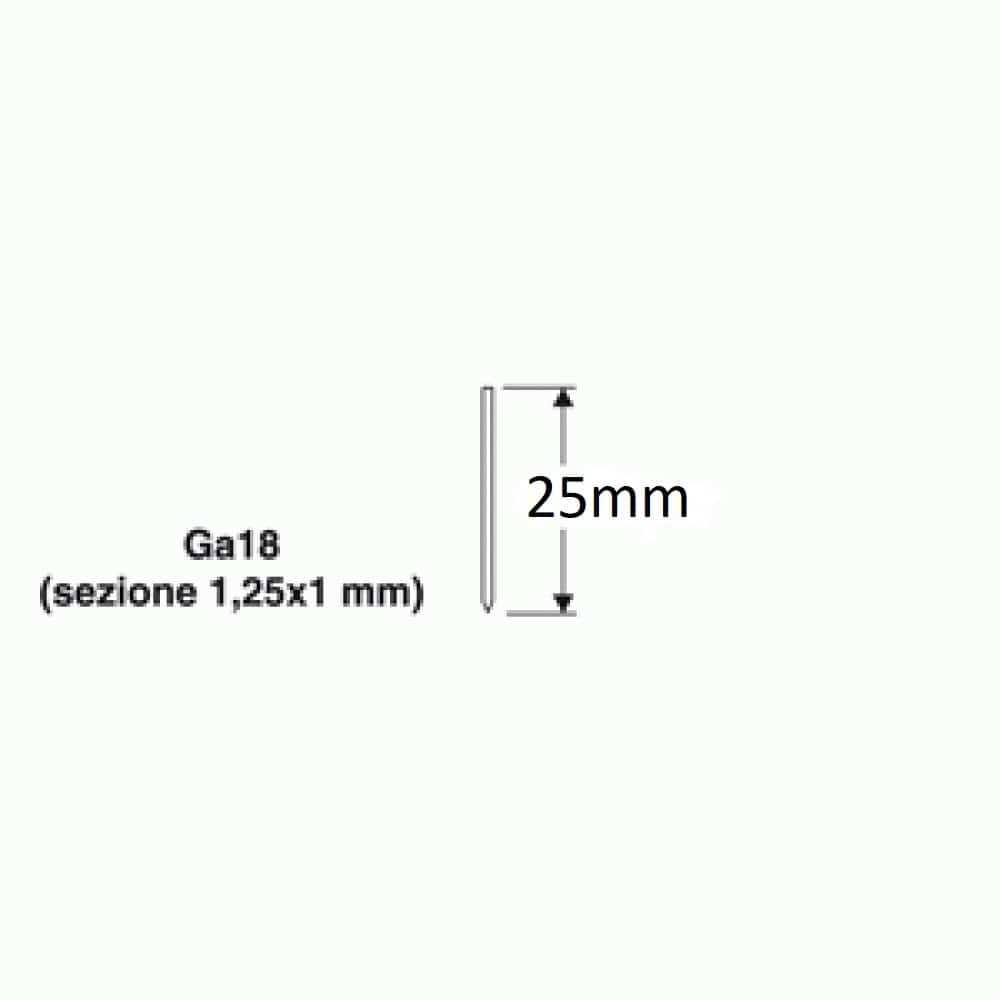 Игли за пневматичен такер 25мм стандарт Ga18 от VALEX Италия. Игли за такер се използват обикновено при монтаж /коване/ на даден детайл, при което искаме да няма видими следи от пирони,видий и други материали за коване. Игли за пневматични такери се различават по размери и дълбочина. Освен игли 25мм, предлагаме и игли с размери 14мм, 20мм, 30мм, 40мм, 50мм, а също пирони за пневматичен такер с размери 12мм, 15мм, 20мм, 25мм, 30мм, 32мм, 40мм, 50мм, както и скоби за пневматичен такер с размери 13мм, 16мм, 19мм, 25мм, 32мм и 40мм.