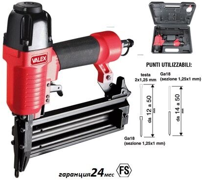 Пневматичен такер F50A за работа със пирони и игли с размери : пирони – от 12мм до 50мм и игли от 14мм до 50мм.